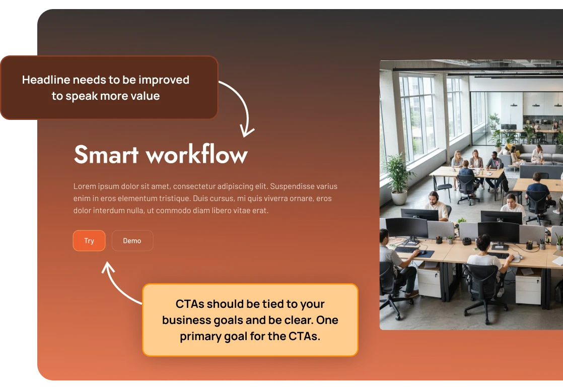 Tailored design that fits your brand, your market, and your business model.Clear messaging that makes your value obvious and drives more signups, demos, or inbound leads.